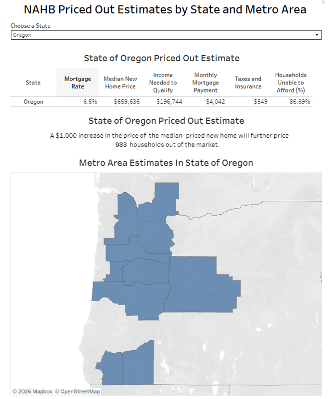 The National Association of Home Builders recently published a study (and did an excellent job breaking down the data) showing that for every $1,000 drop in home price, 983 additional families in the highlighted region below (essentially Western Oregon) are able to enter the housing market from an affordability standpoint — if they choose to do so.